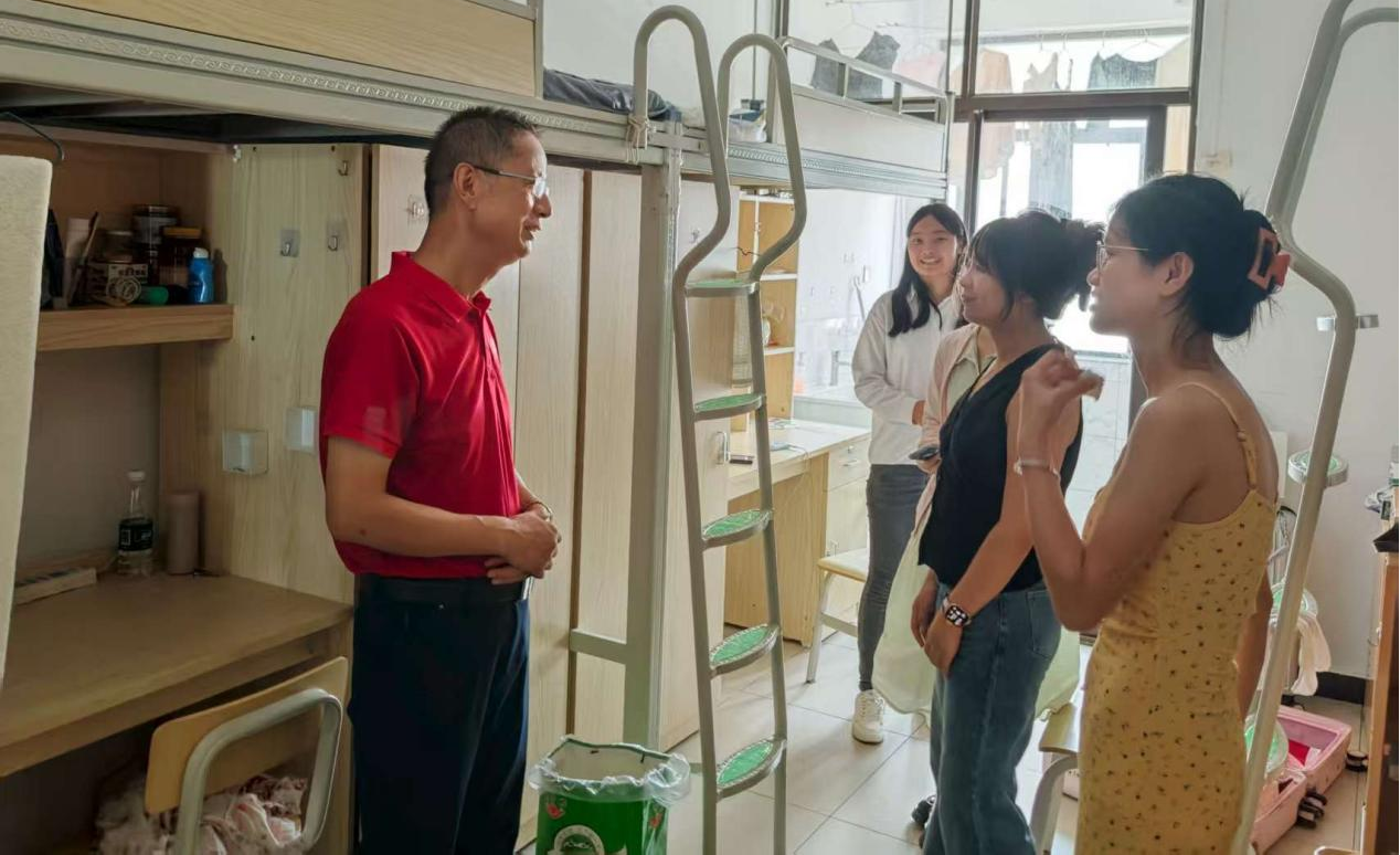 在迎新现场,学校及学院领导与新生及家长们亲切交流、慰问在场的迎新志愿者们。情真意切的话语、真挚的关怀让刚来到校园的新同学们感受到浓浓的温暖。