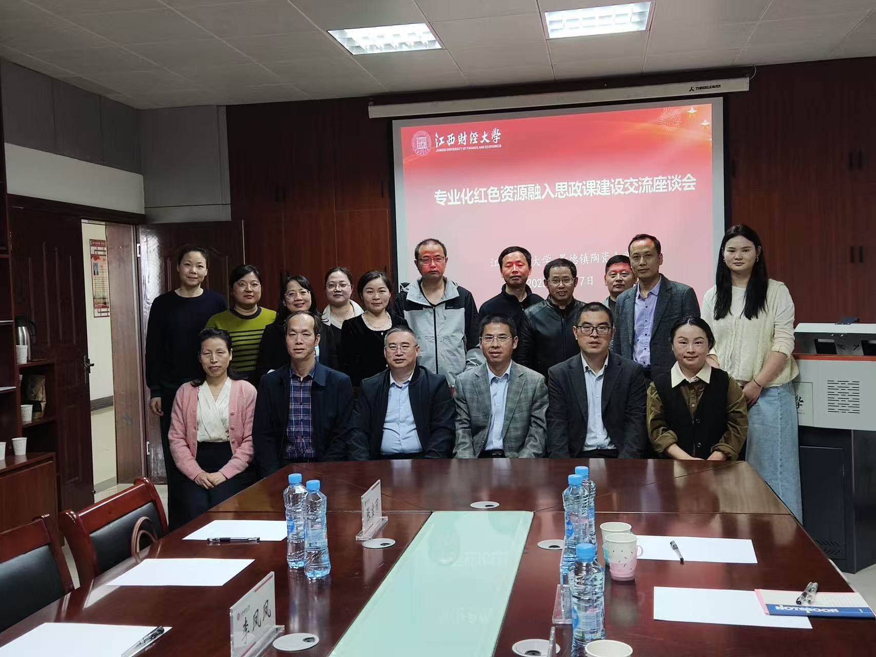 随后,调研组赴江西财经大学马克思主义学院开展调研。江西财经大学马克思主义学院院长刘晓泉、党委书记肖建文等详细介绍了其学院建设情况,特别是围绕其“红色财经”特色,分享了思政课程与专业课程的协同育人经验以及思政课融入经济领域的典型案例,为我院探索“思政+”特色育人路径探索提供了有益借鉴。