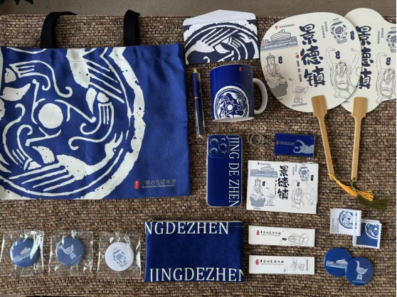 作品简介:团队成员以中国陶瓷博物馆为背景,采用传统瓦当纹样设计,融合现代审美——瓦当纹样源自古代建筑,承载深厚文化底蕴,经现代手法创新后,简洁不失细节,更贴合当代审美。系列文创作品包含帆布袋、马克杯、信封、钢笔等12类日常用品,以深蓝色为主色调,搭配白色瓦当纹样,对比鲜明,既庄重又富活力。产品精选材质,注重环保与实用,旨在通过日常用品传递传统文化,让使用者感受历史温度与文化力量,既是对传统的致敬,也助力文化在现代生活中传承。