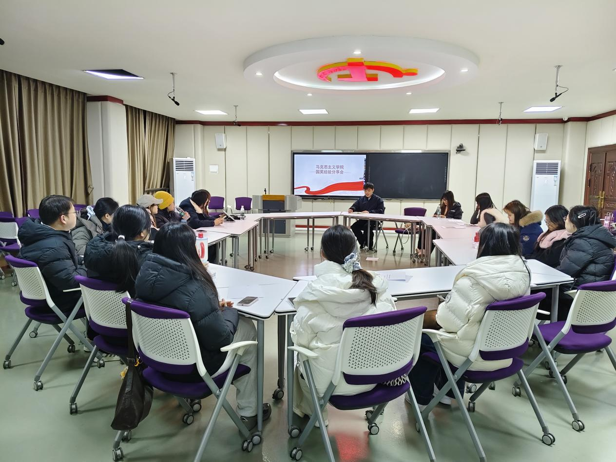 为助力研究生明确学术发展方向、系统掌握学科竞赛备赛方法,并进一步了解国家奖学金评审相关要求,2025年12月26日晚,马克思主义学院在勤学楼611教室举办国家奖学金获得者经验分享会。本次分享会邀请2023级思想政治教育专业研究生赵梦洁、许祺瑞、罗珊三位同学进行交流,学院共计70余名研究生参与。