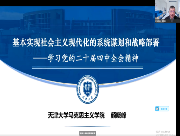 会上,还进行了专家导学和教学展示。天津大学马克思主义学院院长颜晓峰教授以《基本实现社会主义现代化的系统谋划和战略部署—学习党的二十届四中全会精神》为题开展专家导学,马克思主义学院教师汪婷以《文化自信更加坚定》为题作教学展示,与会人员围绕备课主题进行了研讨交流。