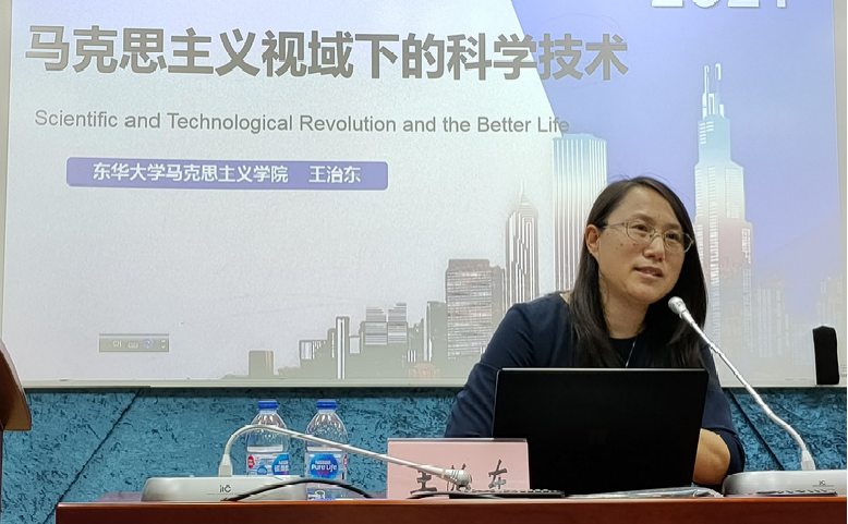 王治东从生活中的小事介绍了科学技术的演变历史,其后从马克思与恩格斯如何看待科学技术、科学技术的本质、科学技术与美好生活、四次科技革命的背景以及成果影响等四个方面详细地介绍了马克思主义视野下的科学技术。王治东指出,科学技术本身既是解放的力量也是压迫的力量,其性质实际上由资本来决定。在马克思看来,资本不创造科学,却占有利用科学来创造财富,进一步占有人的剩余价值。在这一层面来讲,科学技术不仅是物的存在,也是一种关系的存在。同时,科学技术能推动资本扩张从而促进生产力的发展,在历史上起推动作用。马克思的科学技术观作为一脉相承的体系,具有科学技术对民族复兴的建设性意义,我们要牢牢把握以科学技术为基础的生产力与生产关系间的矛盾,用马克思主义指导中国的现代化建设。