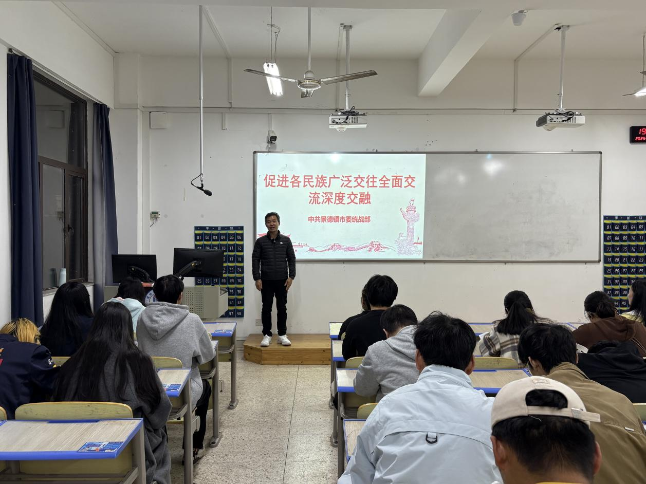 为深入贯彻落实省教育厅、学校关于应用型人才培养的工作部署,深化产教融合,推动“中华民族共同体概论”课与地方特色文化深度融合,2025年11月11日,景德镇陶瓷大学马克思主义学院举办“产业精英进课堂”特色活动。本次活动邀请景德镇市委统战部副部长卢柳芳走进课堂,以“促进各民族广泛交往全面交流深度交融”为主题,为师生带来一场兼具理论高度、历史厚度与实践温度的专题授课,让中华民族共同体理念在青年学子心中落地生根。